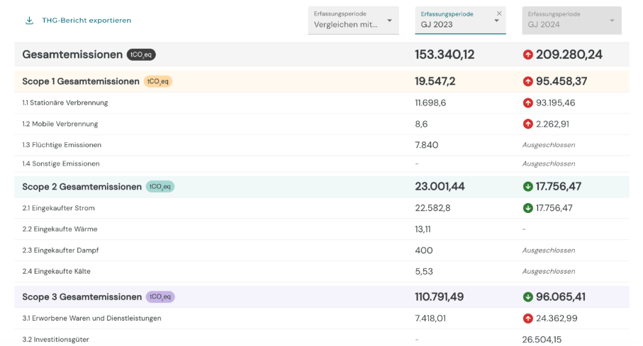 Die eigentliche Berechnung erfolgt durch Multiplikation der Aktivitätsdaten mit den jeweiligen Emissionsfaktoren. Die Ergebnisse werden aggregiert und nach Scopes strukturiert dargestellt. So entsteht ein vollständiges Bild des unternehmensweiten CO₂-Fußabdrucks.